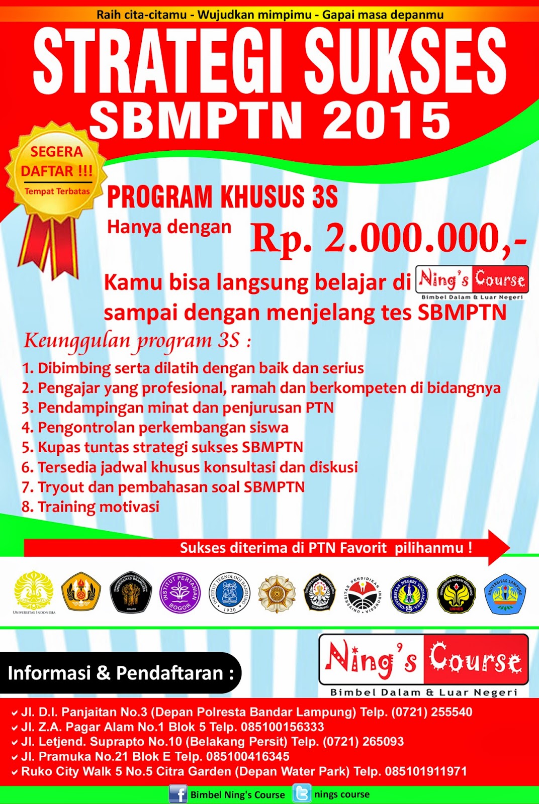 Program Khusus Strategi Sukses SBMPTN 2015 | Bimbingan Belajar Ning’s Course Bandar Lampung