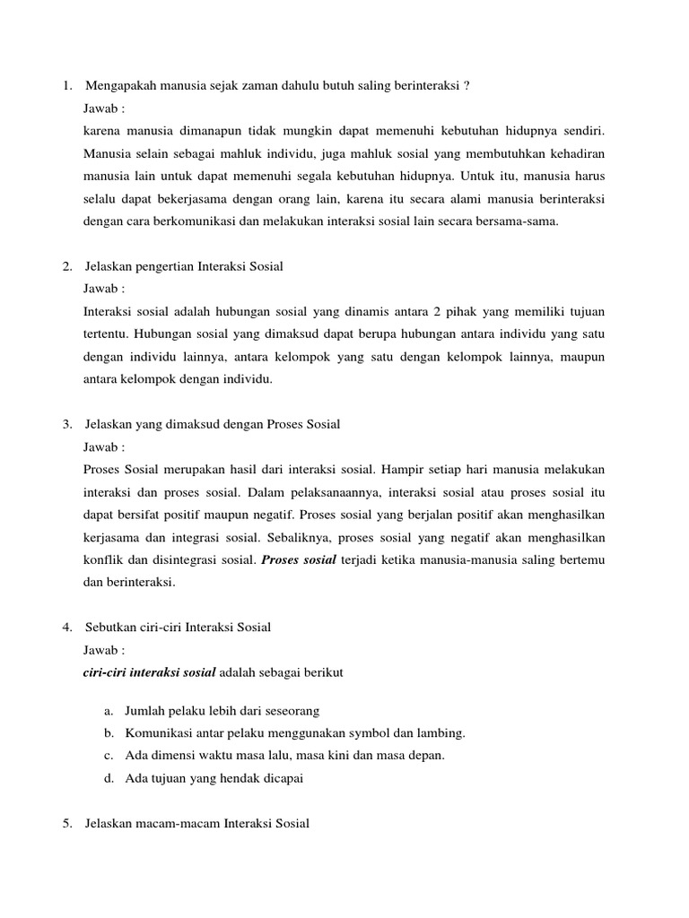 sebutkan 5 tujuan interaksi sosial - Brainly.co.id