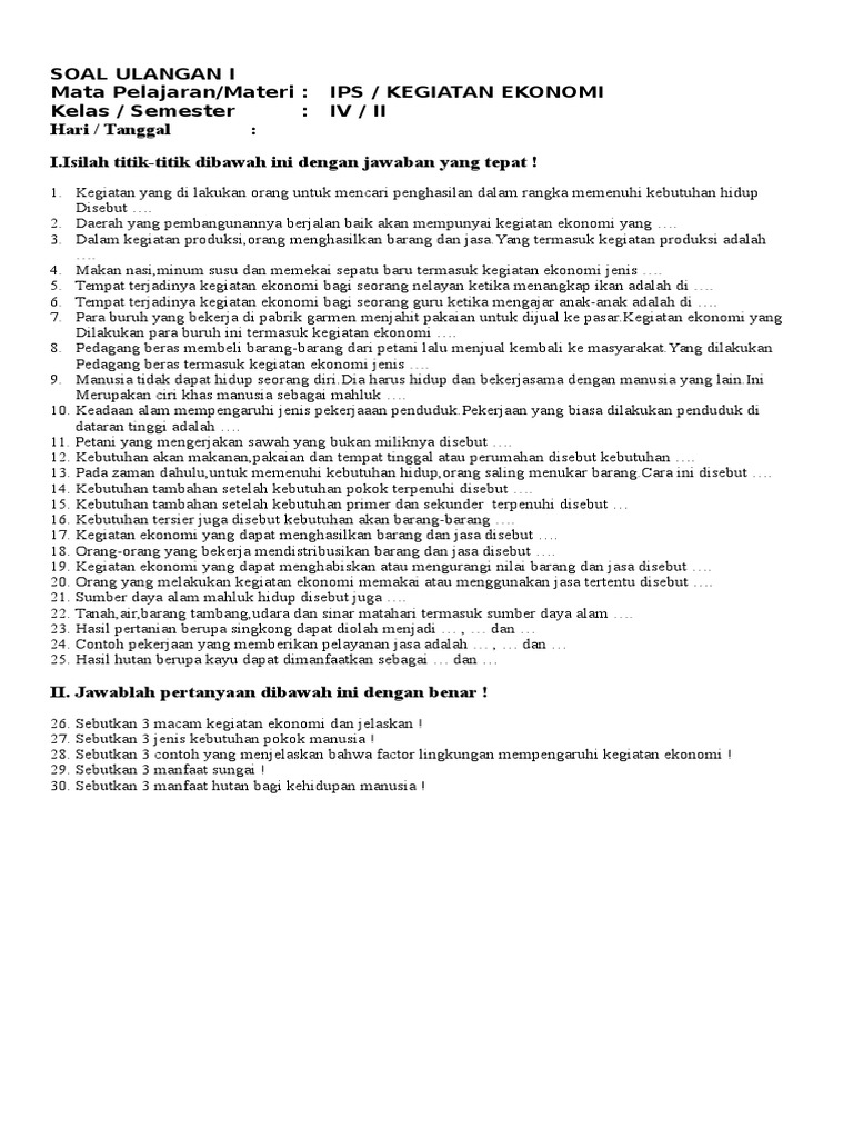 Soal IPS Kelas 5 SD BAB Jenis Usaha dan Kegiatan Ekonomi Dan Kunci …