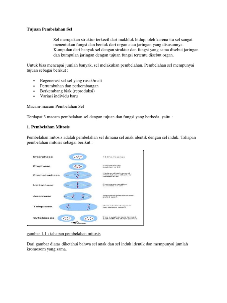 apa tujuan dari pembelahan mitosis ?. - Brainly.co.id