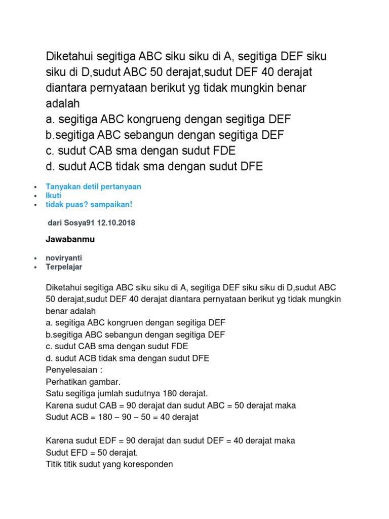 Diketahui segitiga ABC siku-siku dengan sudut tertentu maka …