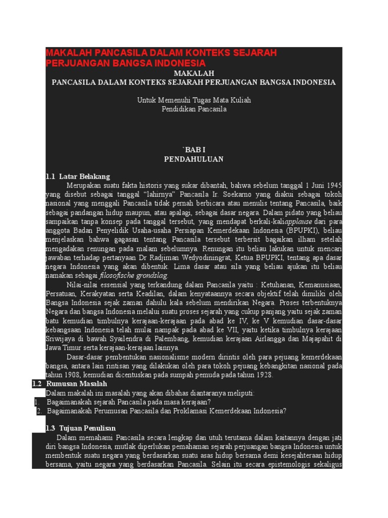 DOC) PANCASILA DALAM KONTEKS SEJARAH PERJUANGAN BANGSA INDONESIA | Gaung Karina - Academia.edu