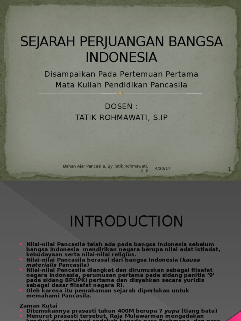 PANCASILA DALAM ARUS SEJARAH BANGSA INDONESIA.pdf - PANCASILA DALAM ARUS SEJARAH PERJUANGAN BANGSA Kelompok 1 Anisa Yuliani Dandi Novandri Dhina Febryza | Course Hero