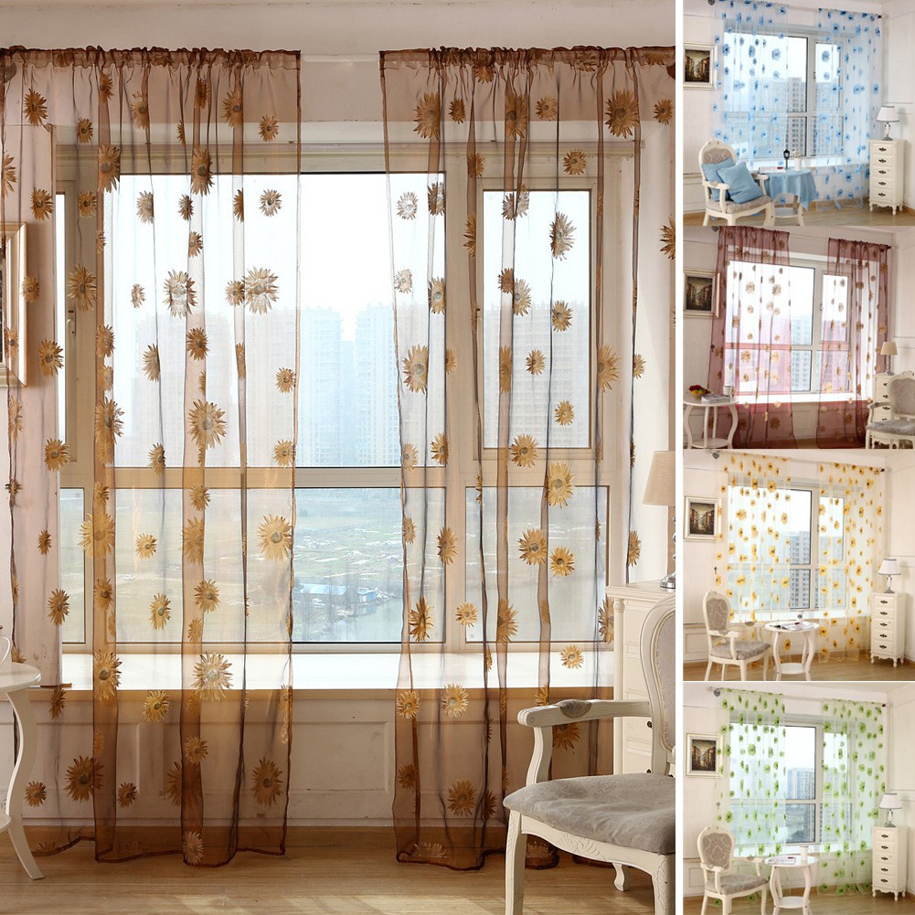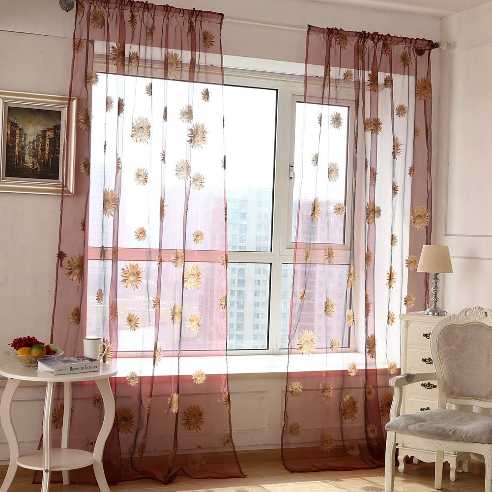 Tirai Jendela dengan Bahan Tulle Voile dan Gambar Motif Bunga …