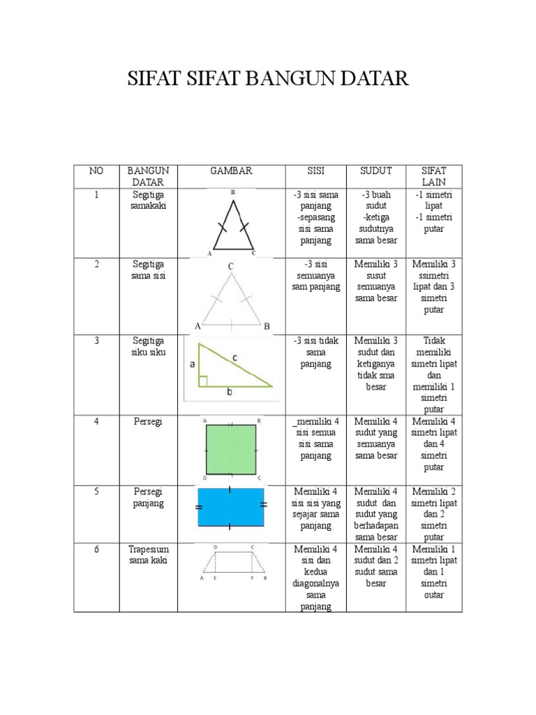 Sifat Sifat Bangun Datar dan Rumusnya Le