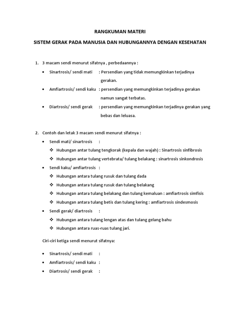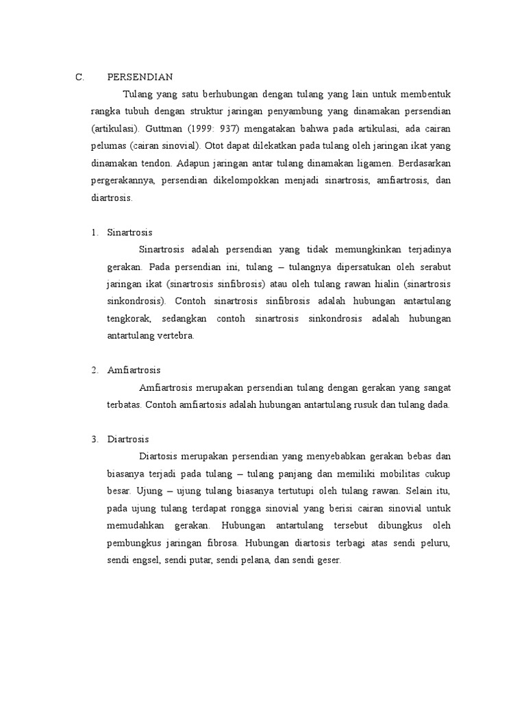 1. Sendi Engsel Sendi engsel adalah persendian yang memungkinkan terjadinya gerakan ke satu arah. Contohnya, Persendian pada tulang siku dan lutut. - PDF Download Gratis