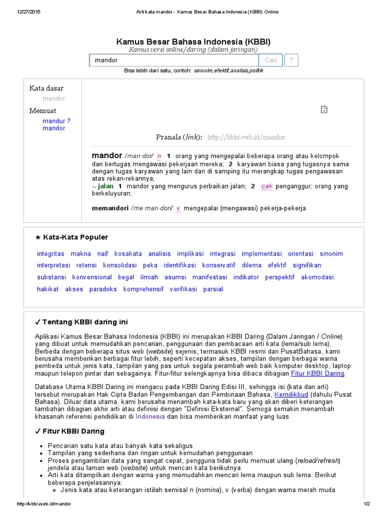 Arti Kata Mandor - Kamus Besar Bahasa Indonesia (KBBI) Online