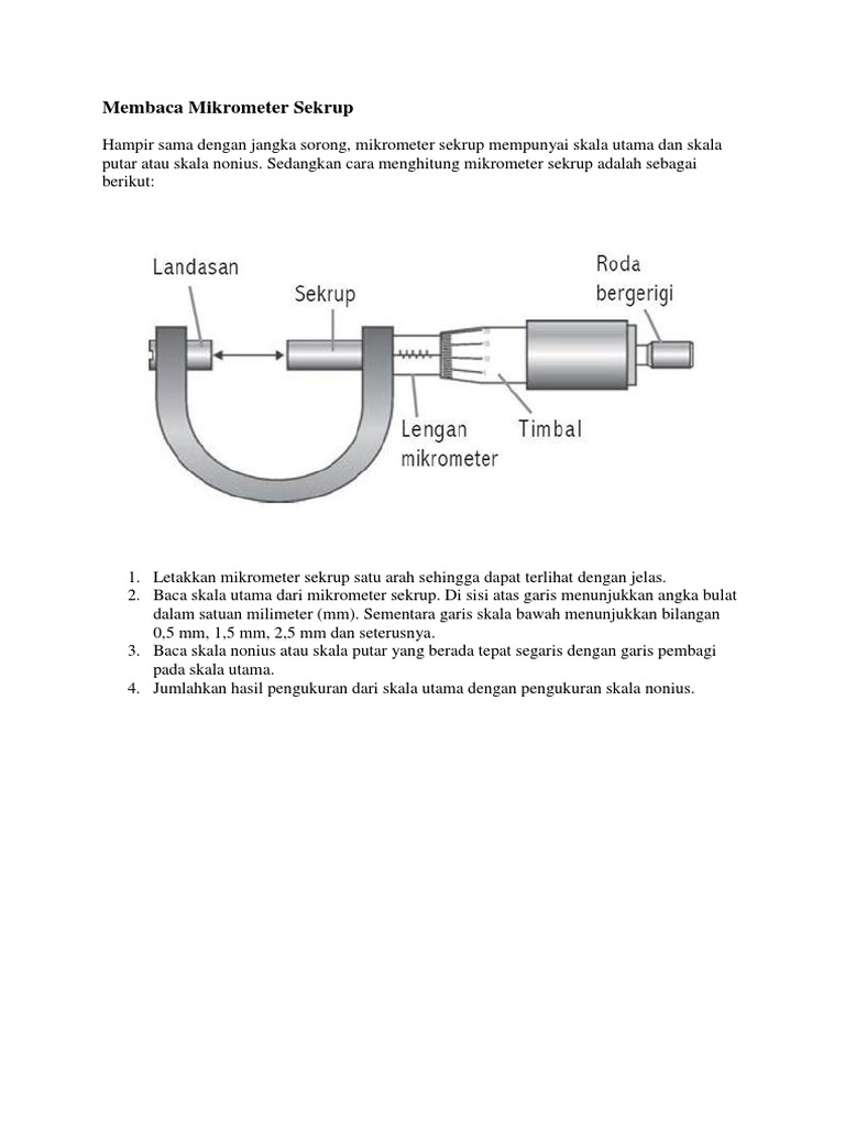 Identitas - .Cara Penggunaan Mikrometer Sekrup 1) Pastikan pengunci dalam keadaan terbuka. … (rahang - [PDF Document]