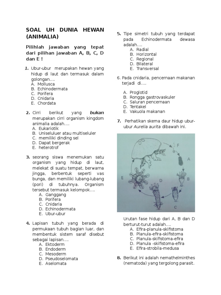 5. Perhatikan skema daur hidup ubur-ubur Aurelia aurita di atas. Urutan fase hidup dari A, B dan D berturutturut - PDF Free Download