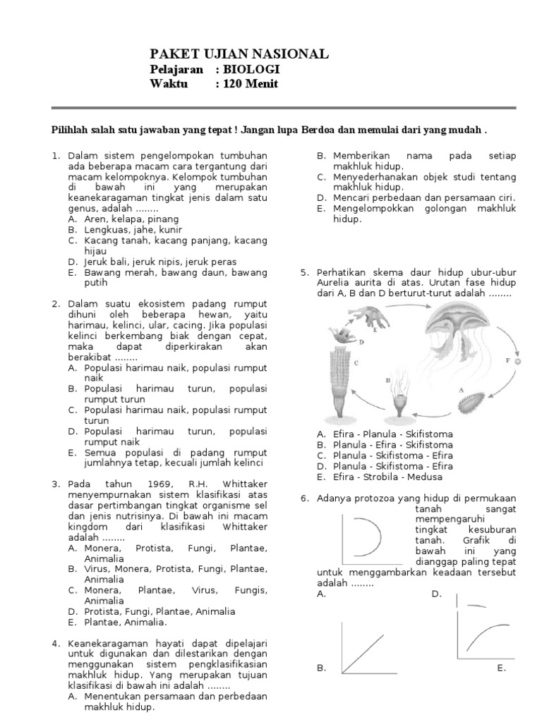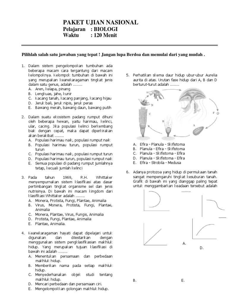 TRY OUT UJIAN NASIONAL 2006 - .Web viewDi bawah ini macam kingdom dari klasifikasi Whittaker adalah