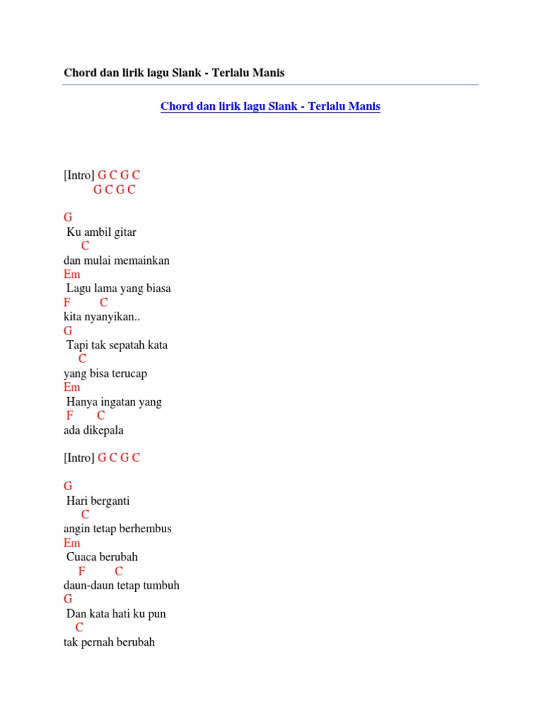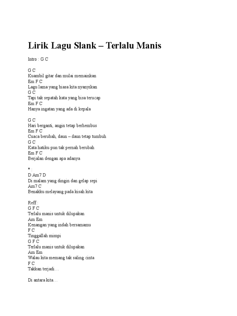 Slank - Terlalu Manis (suka Suka) Chord Dasar Kunci Gitar & Lirik Lagu ©chordtela [en5kermrzkno]