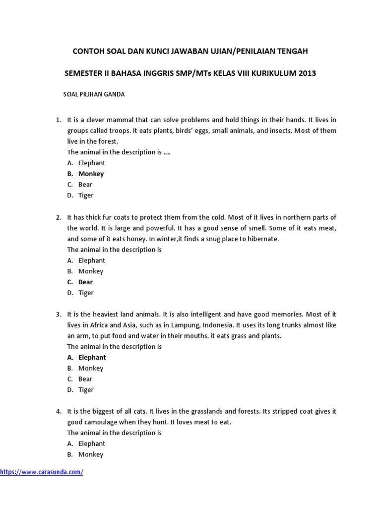 Soal UTS2 B. Inggris 8 K13 | Bears | Elephant