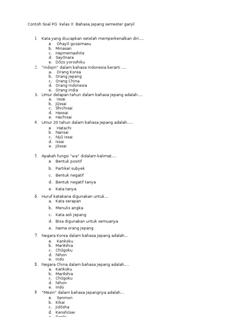 Contoh Soal Pilihan Ganda Bahasa Jepang Dan Jawabannya Kelas 10 - Dapatkan Contoh