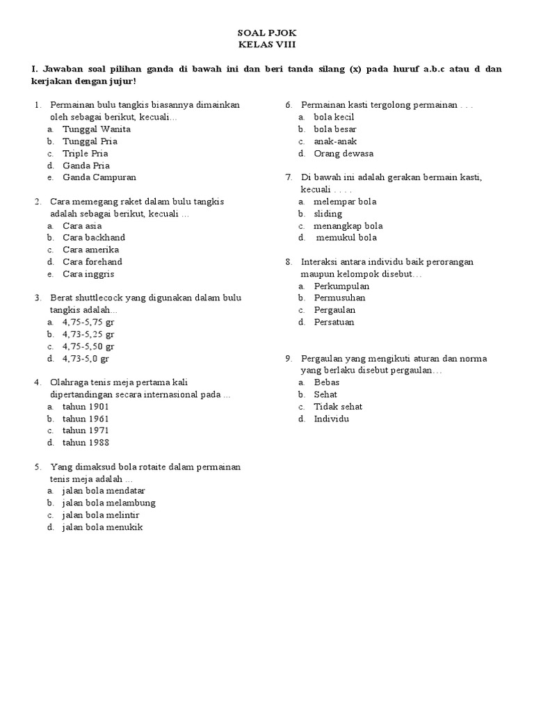 PDF) Contoh SOAL dan JAWABAN Penjaskes UTS 1 kurikulum 2013 | Rahmad Ramadlan - Academia.edu