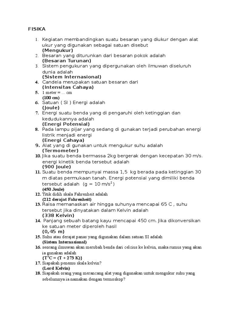 Soal Cerdas Cermat Ipa Smp Dan Kunci Jawaban - Guru Galeri