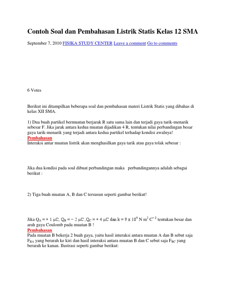 Contoh Soal Dan Pembahasan Listrik Statis Kelas 12