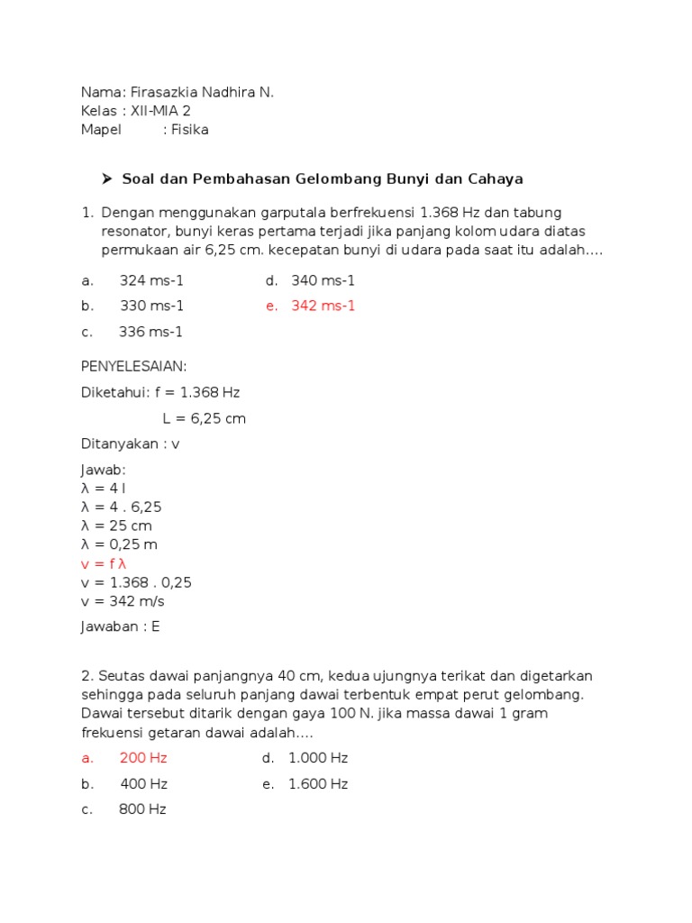 Fisika - Soal Dan Pembahasan Gelombang Bunyi Dan Cahaya