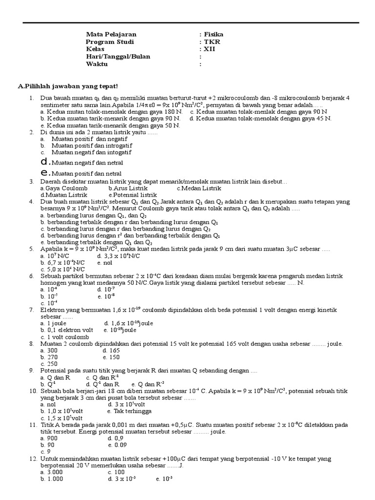 PDF) KUMPULAN SOAL FISIKA KELAS XII | iyoes tobing - Academia.edu