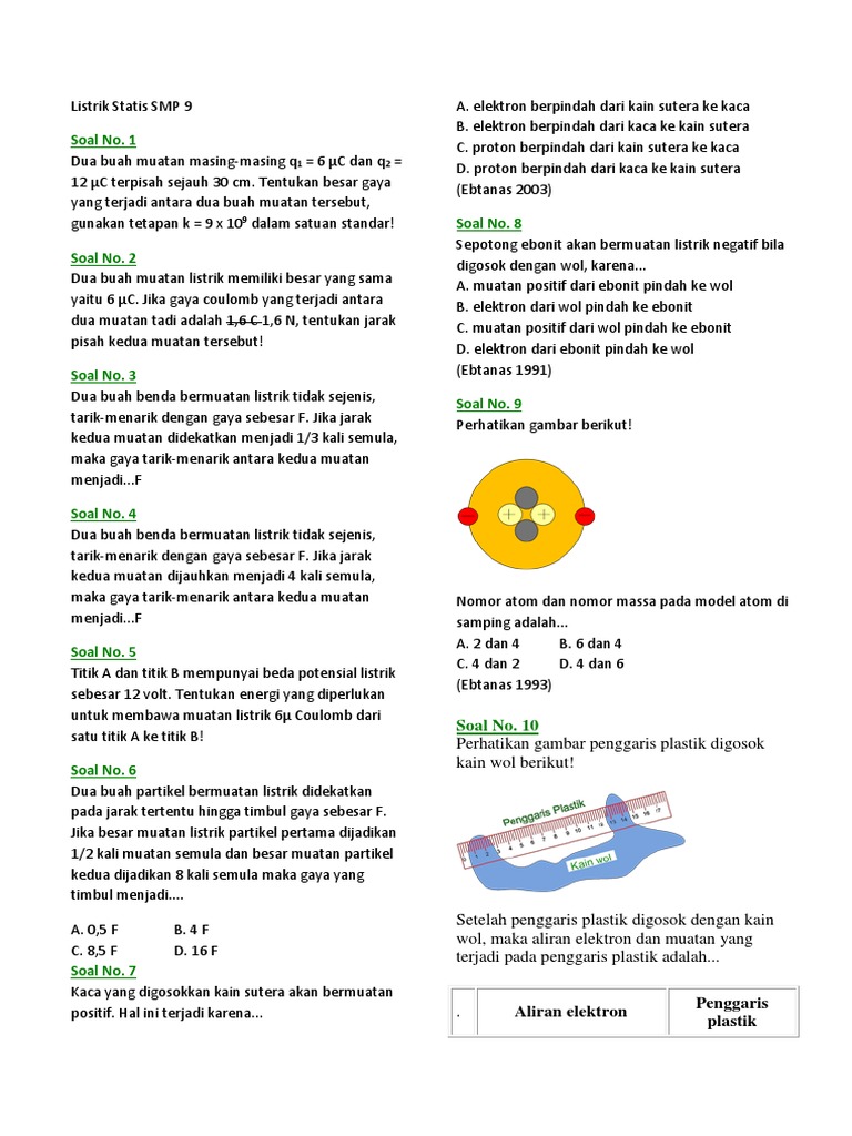 Latihan Soal IPA Listrik Statis Kelas 9 SMP Dilengkapi Kunci …