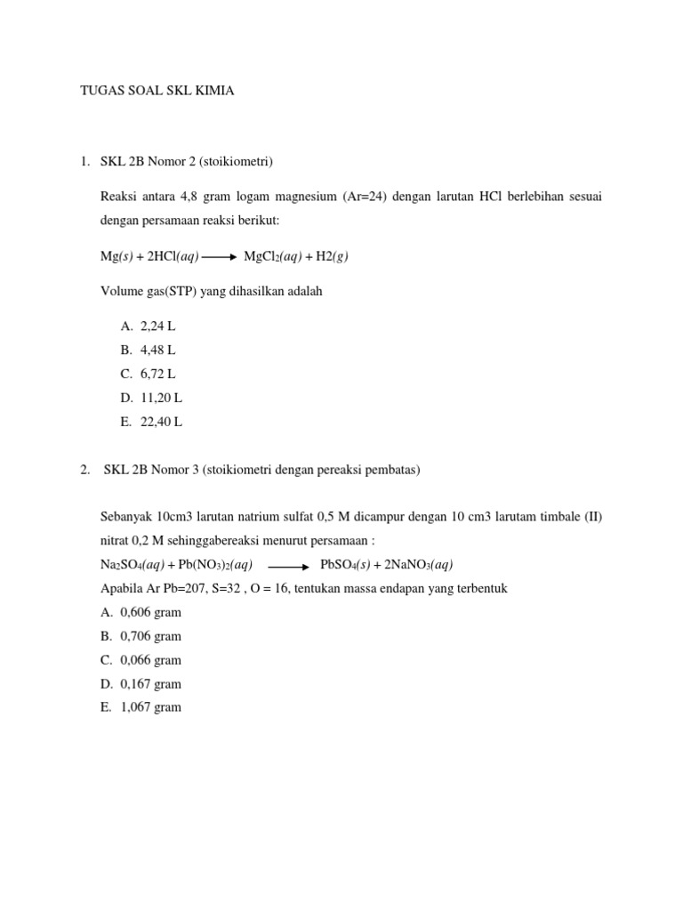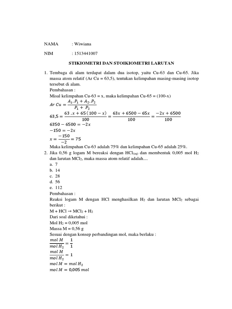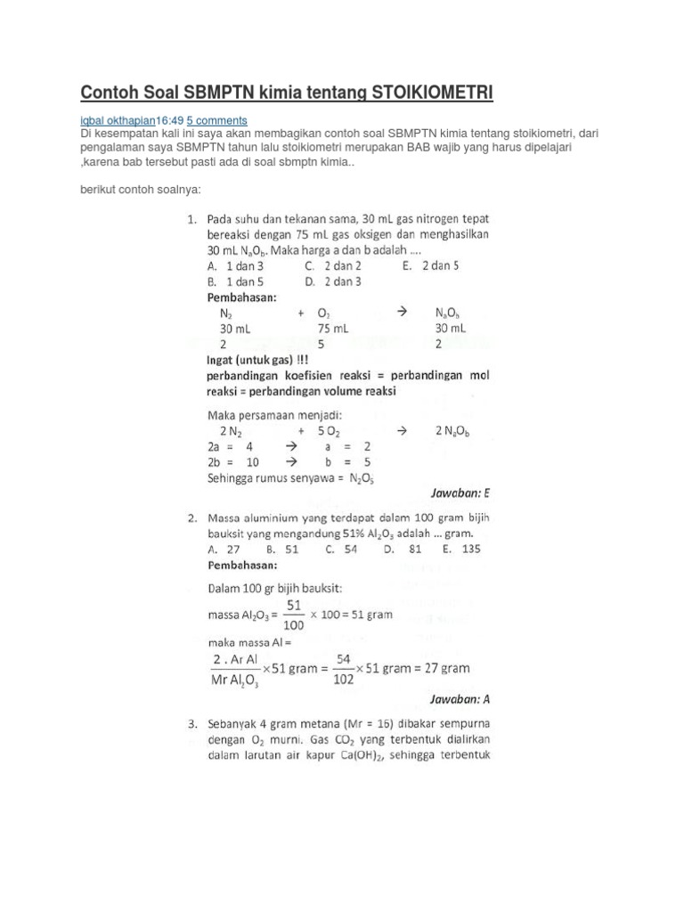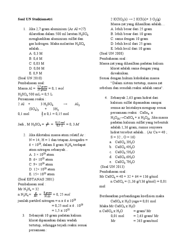 Soal Stoikiometri Dan Pembahasan