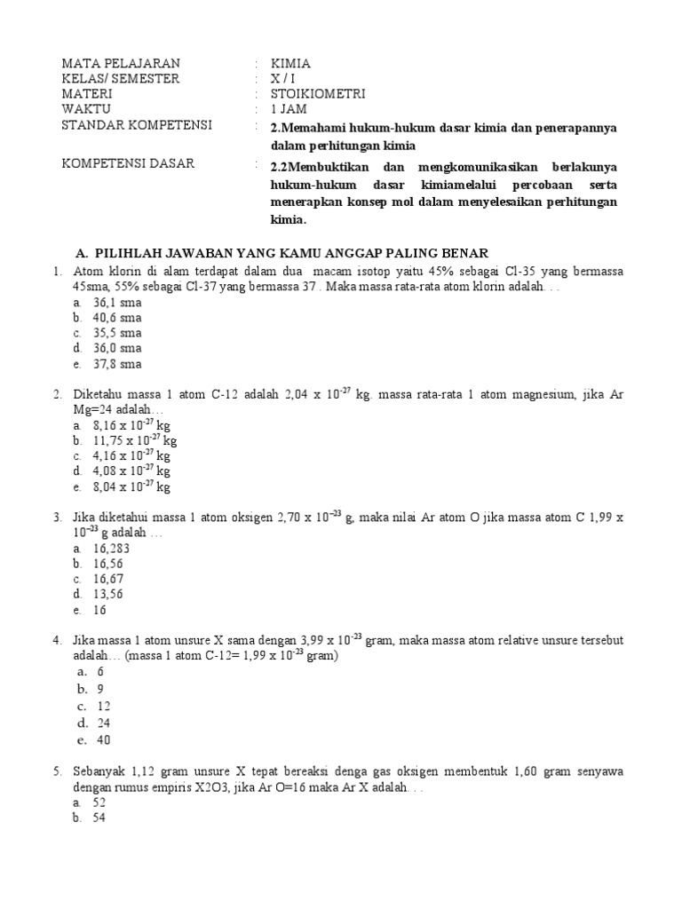 Soal Dan Pembahasan Stoikiometri Massa Unsur Dalam Senyawa …