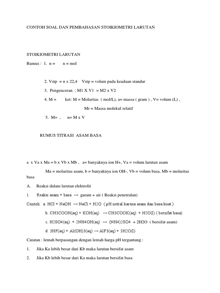 Soal Dan Pembahasan Stoikiometri Larutan