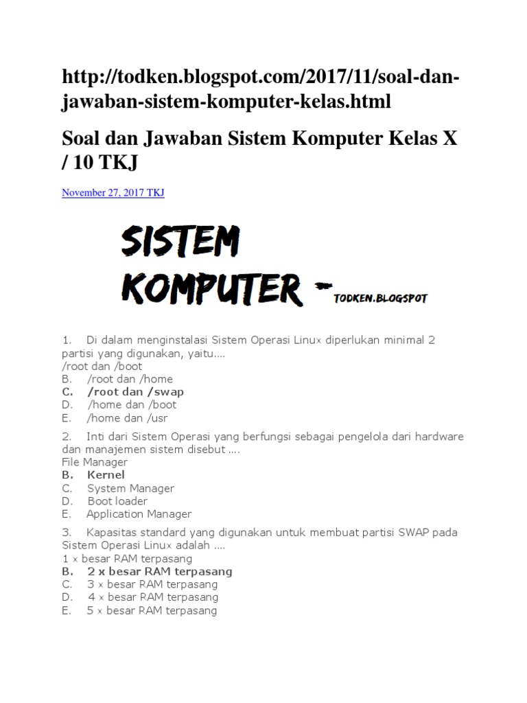 Contoh Soal Sistem Komputer Beserta Jawaban - Berbagi Contoh Soal