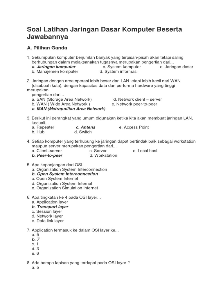 Soal Latihan Jaringan Dasar Komputer Beserta Jawabannya