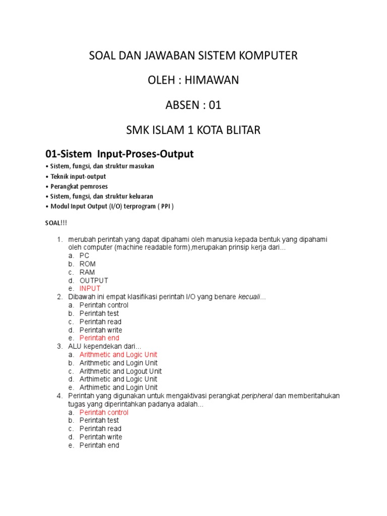 Contoh Soal Sistem Komputer Beserta Jawaban - Contoh Soal …