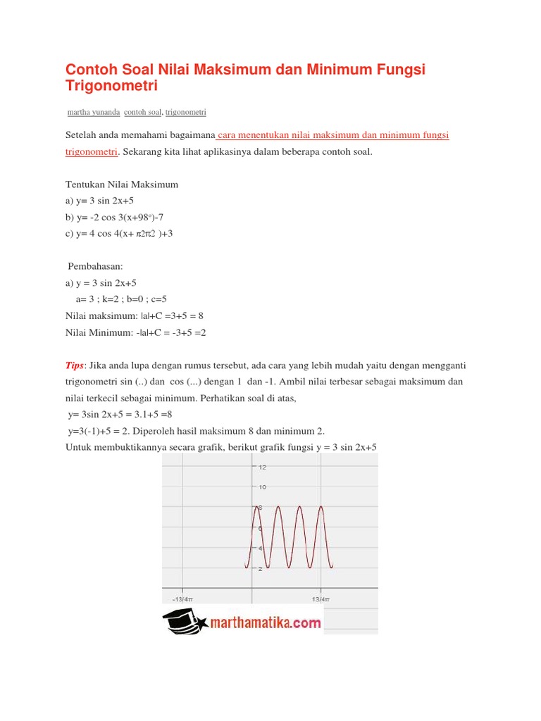 Contoh Soal Nilai Maksimum Dan Minimum Fungsi Trigonometri