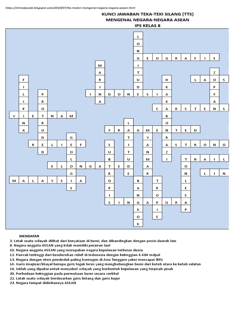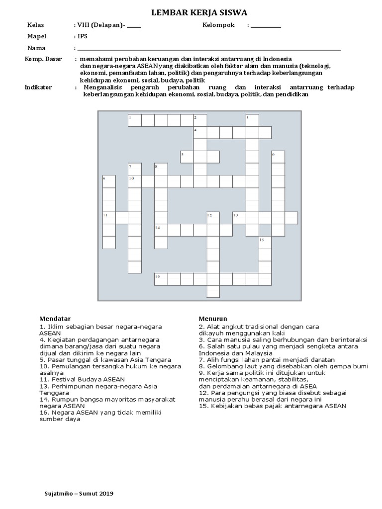 Soal TTS IPS Kelas 9 Semester Ganjil Materi Interaksi Keruangan Terhadap Kehidupan di Negara-negara ASEAN | MGMP IPS Indramayu