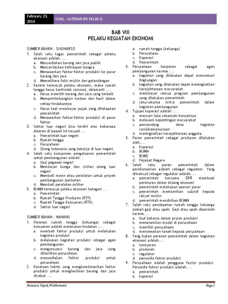 SOAL IPS KELAS 8 - PELAKU KEGIATAN EKONOMI