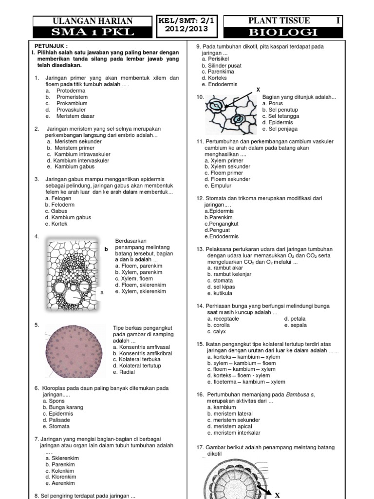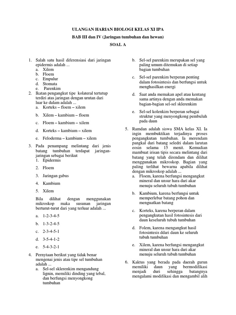Soal Ulangan Jaringan Tumbuhan Kelas 11 - Kemdikbud