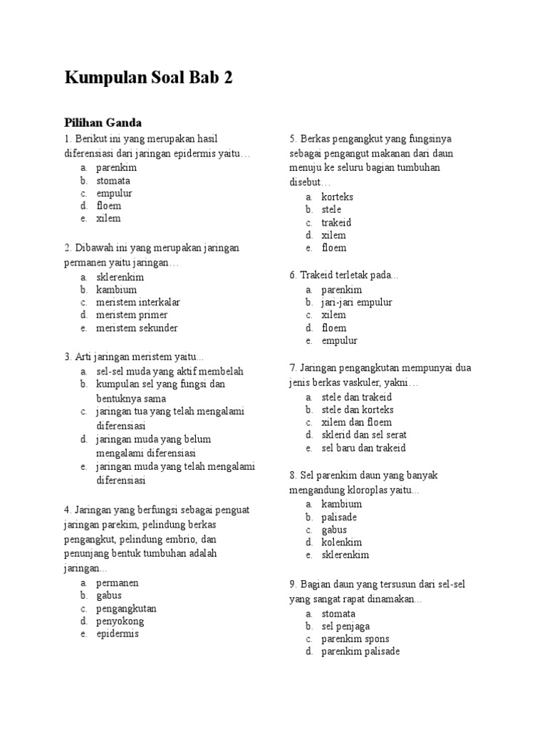 Soal Latihan Bab 2 Struktur dan Fungsi Jaringan Tumbuhan, Beserta …