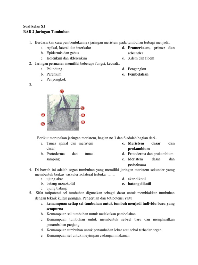 Soal Dan Jawaban Jaringan Tumbuhan