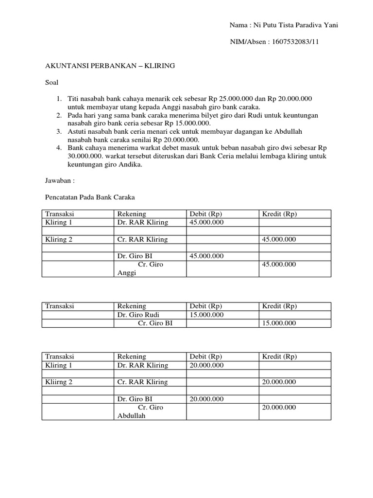 Contoh Soal Akuntansi Perbankan Kliring Dan Jawabannya - Peranti Guru