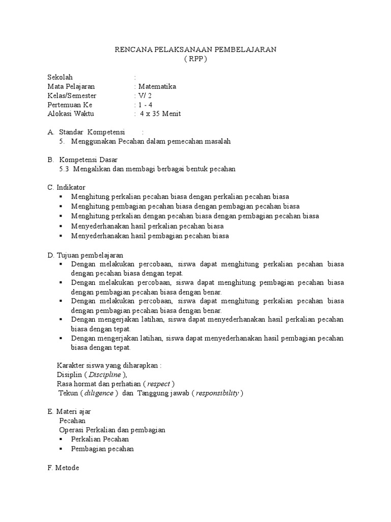 Tugas RPP Perkalian Dan Pembagian Pecahan Biasa 1