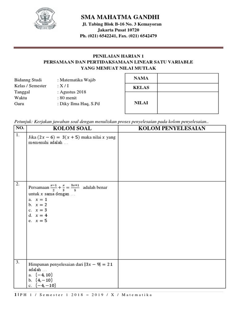 Soal Persamaan Dan Pertidaksamaan Linear Satu Variabel - Guru Paud