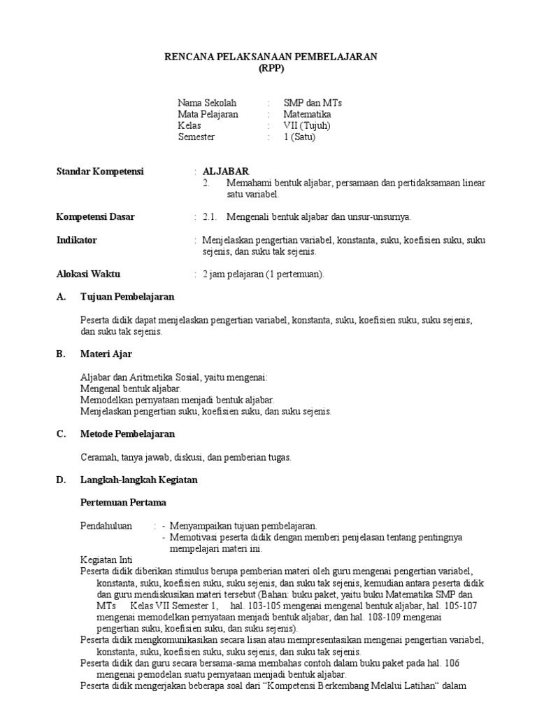RPP KD 3.1 DAN 4.1 PERSAMAAN DAN PERTIDAKSAMAAN NILAI MUTLAK
