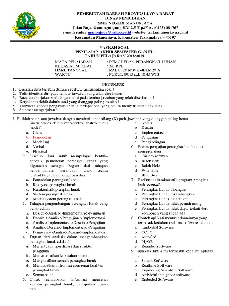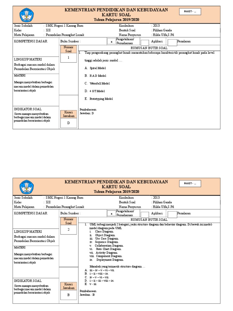 DOC) SOAL PEMODELAN PERANGKAT LUNAK | cbt smkn5 - Academia.edu