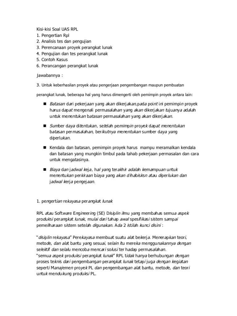 Contoh 10 Soal Rekayasa Perangkat Lunak Beserta Jawaban nya - Your …