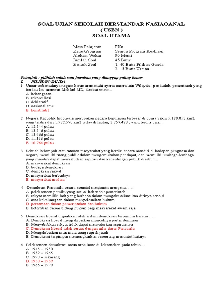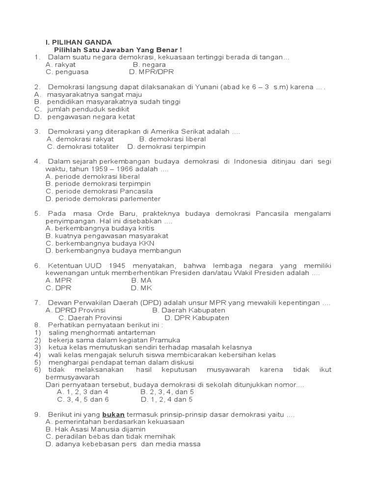 DOC) SOAL : PENDIDIKAN KEWARGANEGARAAN PILIHAN GANDA : PILIHLAH JAWABAN YANG ANDA ANGGAP PALING TEPAT | ARDIANSYAH ARSAD - Academia.edu