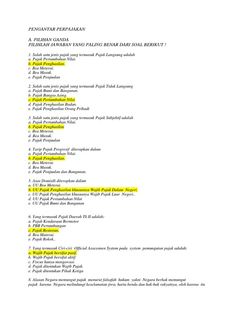 Latihan Soal Pilihan Ganda Tentang Perpajakan Lengkap.docx …