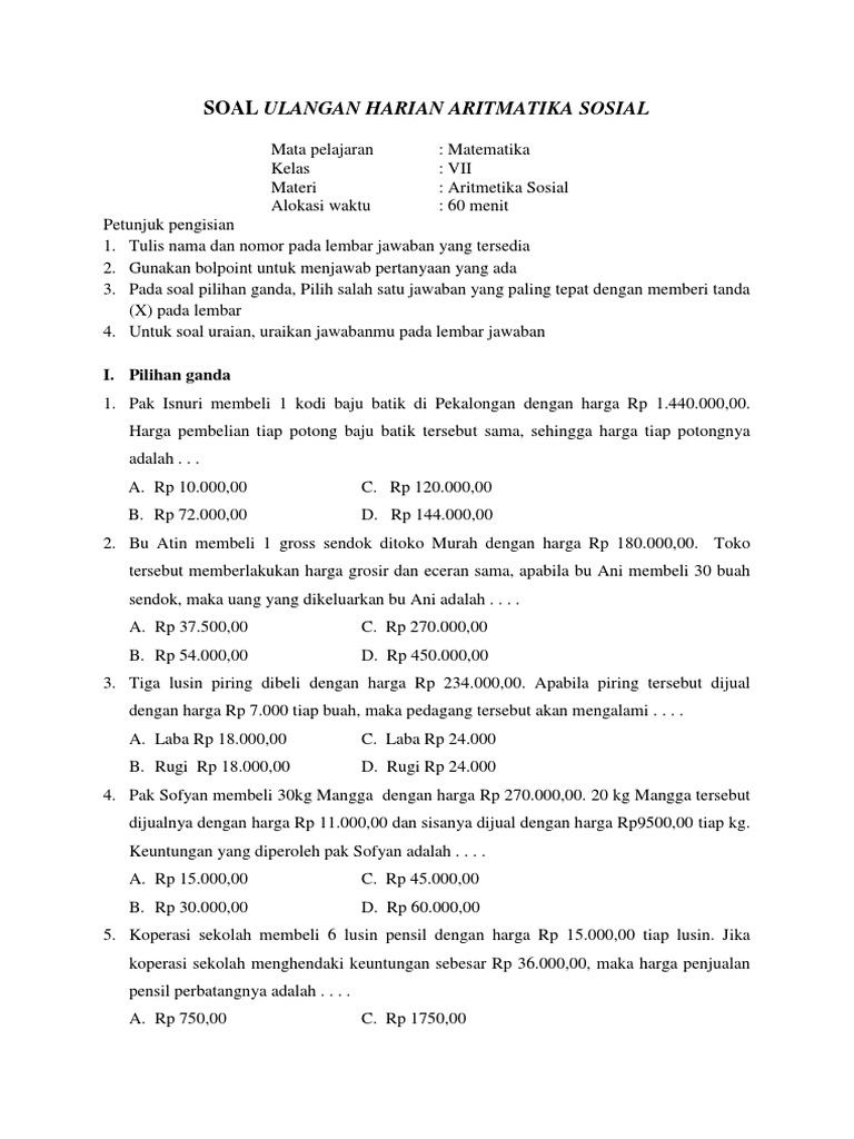 DOC) I. Soal-soal Pilihan Ganda | yasser elhaqq - Academia.edu