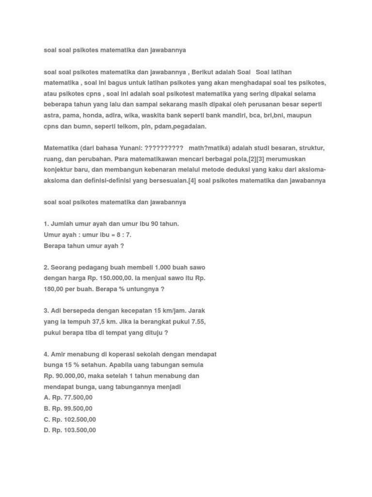 Soal Soal Psikotes Matematika Dan Jawabannya