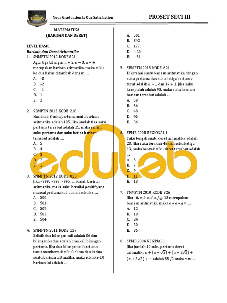 Latihan Soal Dan Jawaban Barisan Dan Deret Dwisetiawan1987 - Cute766