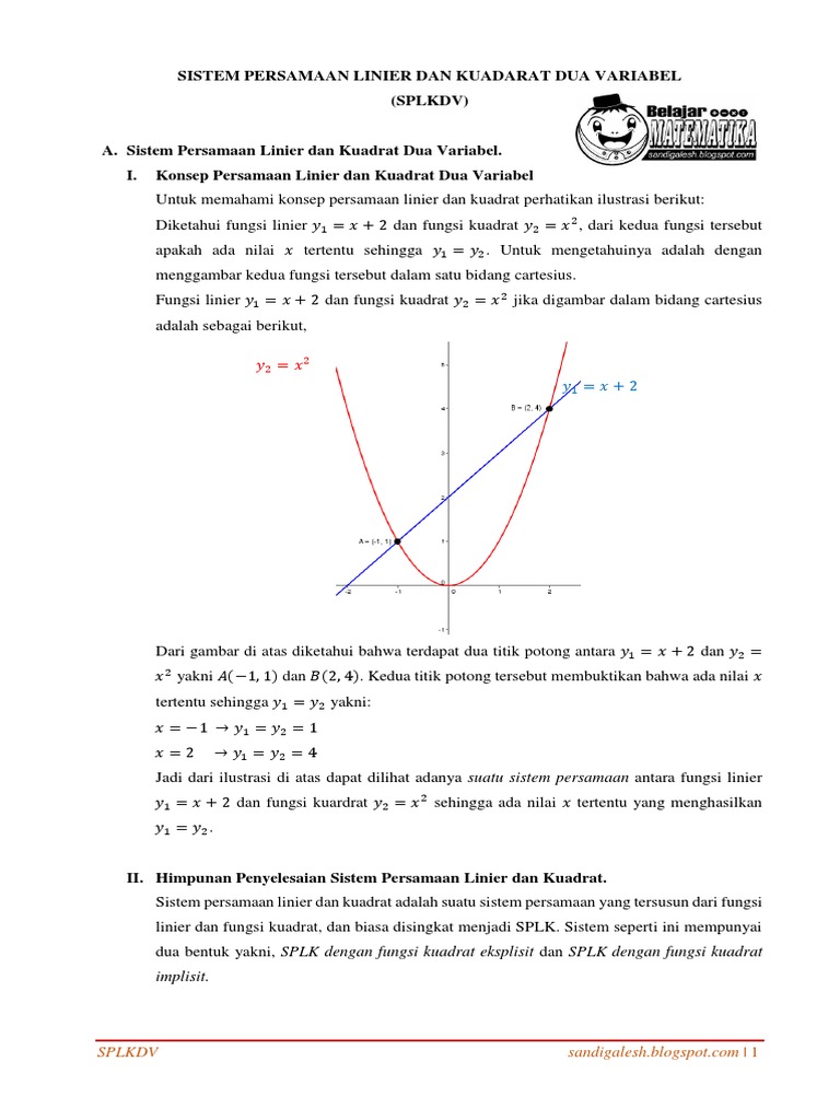 Sistem Persamaan Linier dan Kuadrat Dua Variabel | ahmadthohir1089 …