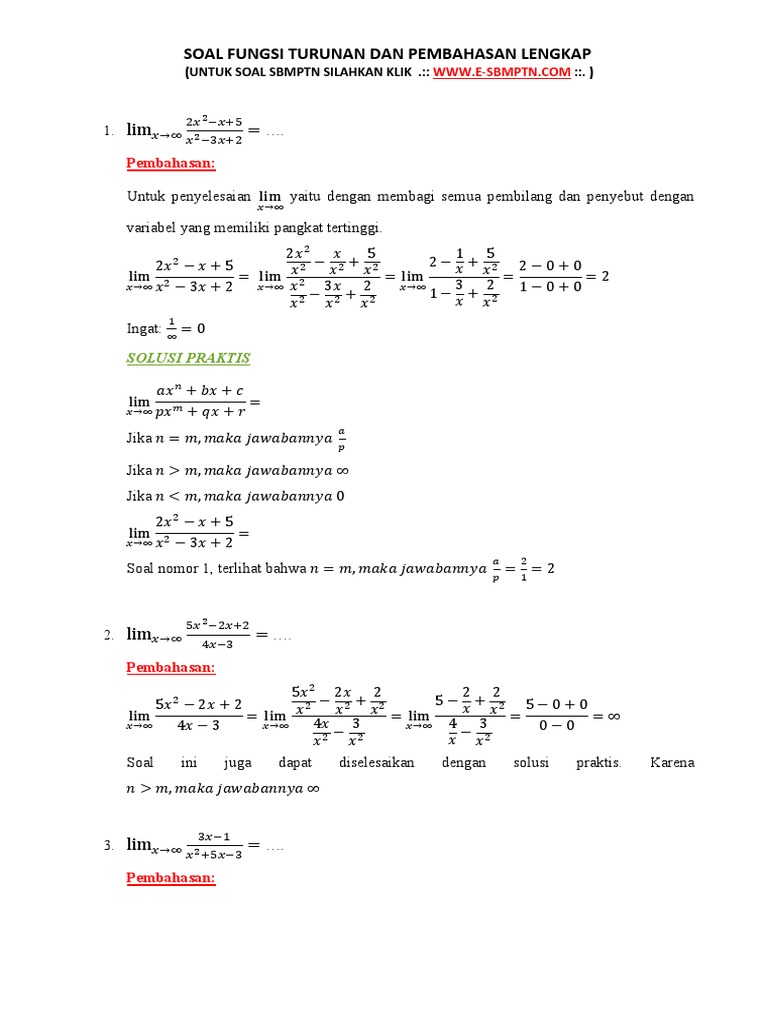 40+ Soal dan Pembahasan Matematika Dasar Limit Tak hingga Pada …