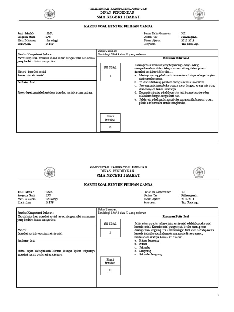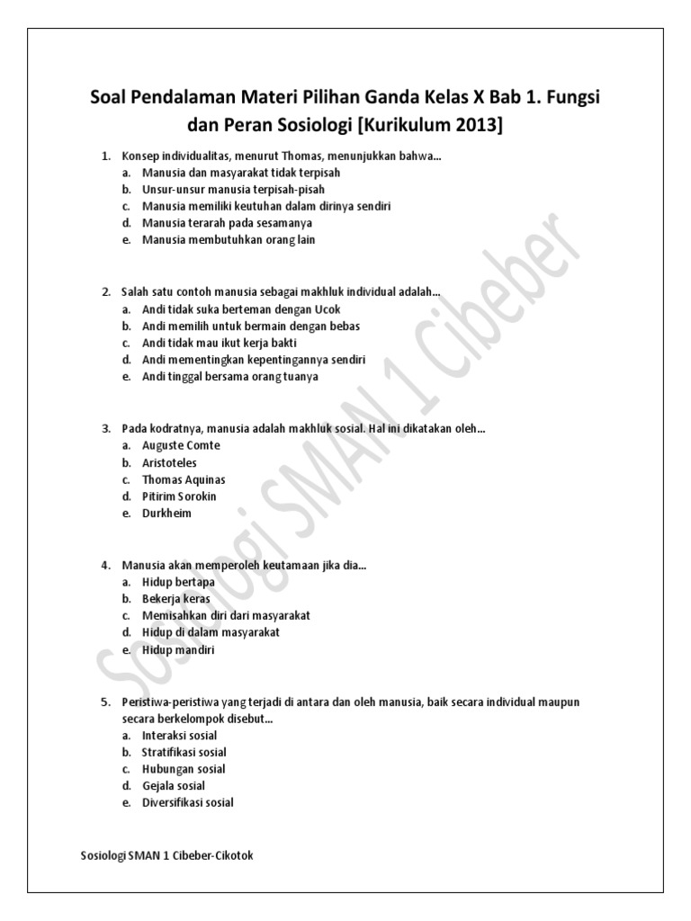 Contoh Soal PG Sosiologi Kelas X Semester 1 Kurikulum 2013 Beserta …
