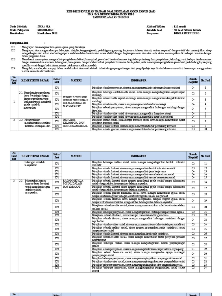 kisi-kisi PAT Sosiologi Kelas 10 2019 - dikdasmen.info.doc